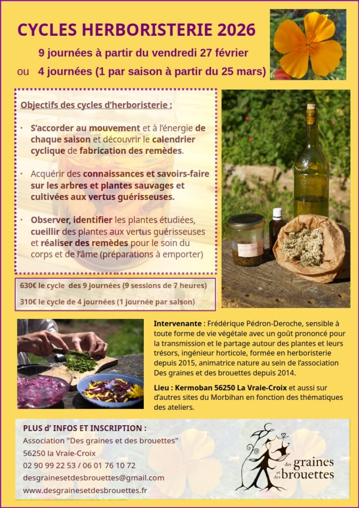 Inscription et infos : 02 90 99 22 53 ou 06 01 76 10 72 desgrainesetdesbrouettes@gmail.com
